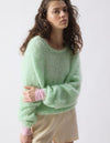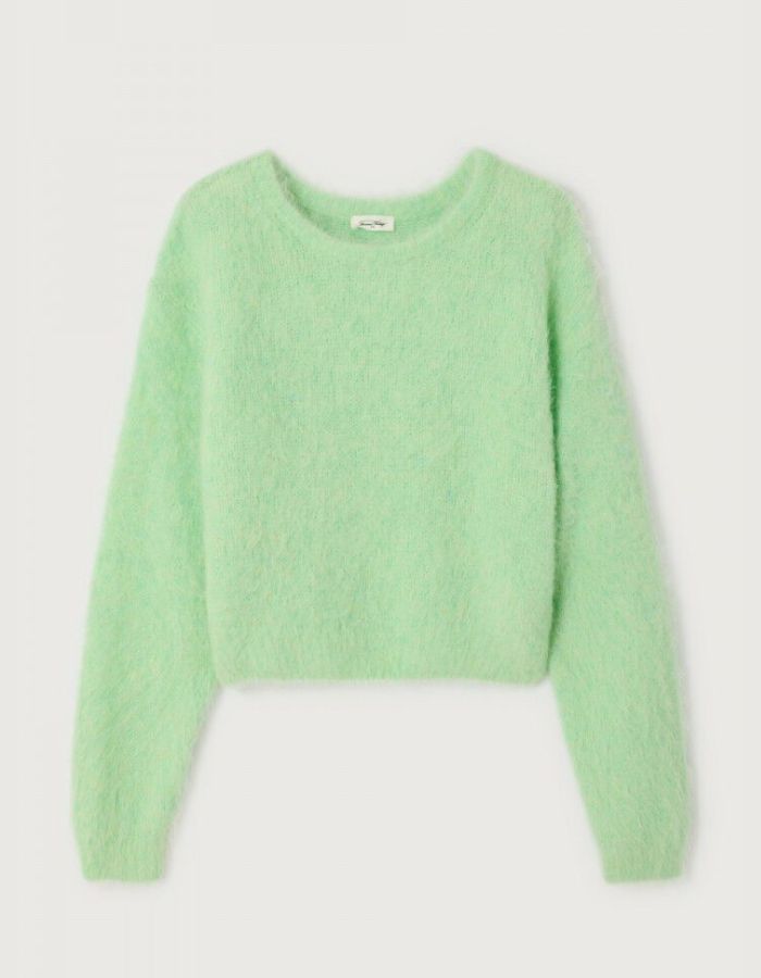 pull Niby American Vintage, pull ample femme, pull amande chinée femme, pull vert femme American Vintage, pull alpaga fluffy, pull coupe boule femme, maille épaisse American Vintage, pull oversize femme