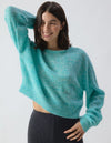 pull Nuggy American Vintage, pull court boule femme, pull turquoise fluo femme, pull laine fluffy, pull coupe boule American Vintage, pull coloré femme, maille fluo American Vintage, pull moderne femme