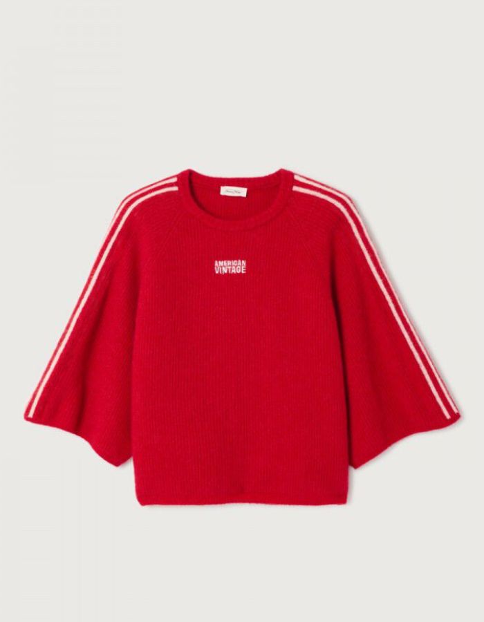 pull Vitow American Vintage, pull carmin chiné femme, pull manches 3/4 femme, pull laine alpaga femme, pull sport rétro femme, maille fluffy American Vintage, pull coupe ample femme, pull iconique AMV