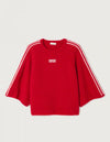 Sa coupe ample et légèrement courte, associée à des manches 3/4 raglan et un col rond, apporte une allure contemporaine et décontractée. Véritable pièce forte du vestiaire, ce modèle se distingue par son logo cousu sur l’avant, signature emblématique de la marque. Son coloris carmin chiné, profond et vibrant, apporte du caractère et une touche élégante à la silhouette, tout en restant facile à porter au quotidien.