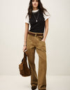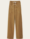 Doté d’une taille élastiquée, d’une braguette avec bouton et d’un cordon à nouer, ce pantalon assure un ajustement confortable et modulable. Les poches plaquées sur le devant ajoutent une touche utilitaire subtile, renforçant son esprit casual chic. Sa teinte camel, douce et intemporelle, se marie facilement avec toutes les palettes de couleurs.