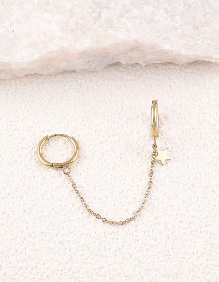 Une mono-boucle dorée pleine de charme, imaginée pour apporter une touche lumineuse et délicatement tendance à l’oreille. Son étoile dorée associée à une fine chaîne pendante crée un joli mouvement, parfait pour un look moderne et raffiné. À porter seule ou en mix & match pour un style encore plus personnalisé.