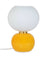 La lampe Adonis grand modèle est une pièce lumineuse au charme résolument rétro. Son pied en verre jaune brillant, en forme de boule élégante, contraste avec la douceur satinée de son abat-jour en verre mat strié blanc. Tout en rondeur et en équilibre, elle diffuse une lumière douce et enveloppante, parfaite pour créer une atmosphère chaleureuse.