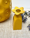 Apportez une note artisanale et lumineuse à votre décoration avec ce soliflore en faïence en forme de fleur à rayures. Sa couleur safran éclatante et sa finition délicate en font une pièce unique qui mettra en valeur vos fleurs fraîches ou séchées avec charme et authenticité.