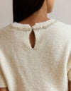 Un top en maille écru délicat et éclatant, parfait pour apporter une note lumineuse et raffinée à vos tenues, du bureau au dîner.