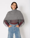 poncho laine femme, poncho gris chiné Berenice, poncho chaud élégant, poncho avec col montant, poncho franges tendance