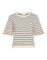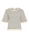 Ce pull en maille est une pièce facile à porter au quotidien. Sa coupe oversize et ses épaules tombantes lui donnent une allure décontractée et moderne, idéale pour un look confortable sans effort. Les rayures marine sur fond beige apportent une touche intemporelle et élégante.