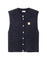 Le gilet East s’impose comme une pièce iconique et polyvalente du vestiaire. Tricoté dans un mélange de fils italiens, il séduit par sa maille fluffy au toucher doux et son rendu visuel nuancé grâce aux coloris moulinés. Sa coupe courte et ajustée, son col rond et sa fermeture boutonnée en font une pièce moderne et intemporelle, à porter seule ou superposée sur un col roulé pour un style affirmé.