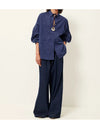 La chemise Fontania couleur Navy Blue séduit par sa silhouette ample et son esprit tailoring revisité. Confectionnée en popeline compacte à fines rayures contrastées, tissée en Italie, elle allie structure, modernité et élégance.