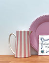 Ce pichet rayé grand modèle séduit par son charme vintage et son design intemporel. D’une contenance d’un litre, il est aussi pratique pour servir de l’eau, des jus ou des boissons fraîches que pour accueillir un bouquet de fleurs et devenir un véritable objet décoratif.