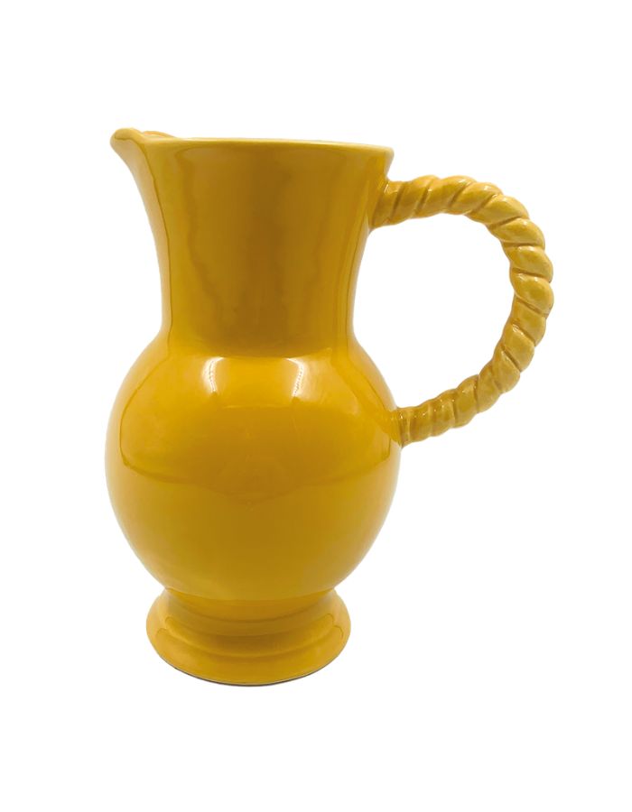 Craquez pour le charme authentique du pichet torsade safran, une pièce au design rétro qui séduit par sa hanse torsadée au caractère unique. Sa teinte safran, chaleureuse et lumineuse, apporte une touche de couleur élégante à la table comme à la décoration intérieure.