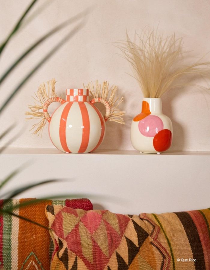 Apportez une dose d'énergie solaire à votre intérieur avec le Vase Rosita de Qué Rico. Ce vase au design belge puise son inspiration dans la chaleur et la joie de vivre du mode de vie espagnol. Avec ses courbes organiques et son motif "Bolas Bailandas" (balles dansantes), il ne se contente pas d'accueillir vos fleurs : il devient une véritable pièce maîtresse de votre décoration, même lorsqu'il est vide. Un objet vibrant qui rayonne par son originalité.