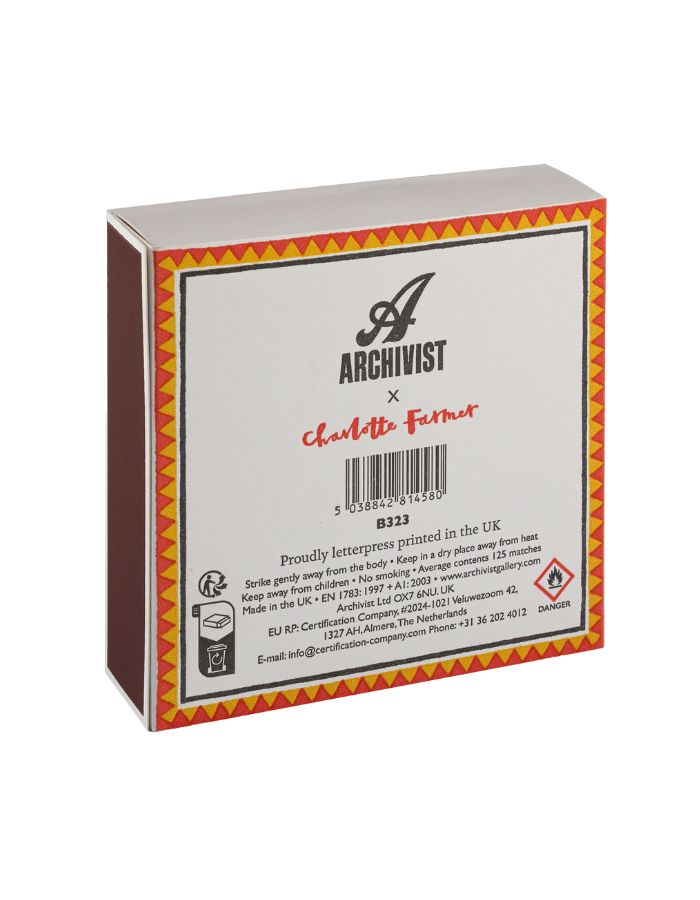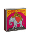 Un duo inattendu pour une touche de fantaisie dans votre intérieur : notre boîte d’allumettes carrée emblématique met en scène un éléphant majestueux portant un guépard allongé sur son dos. Sur fond d’un message tendre — “Safety Matches, Made With Love” — elle associe charme graphique et esprit décalé. Chaque boîte contient 125 allumettes longues aux bâtonnets naturels et embouts rouges, prêtes à illuminer vos bougies, cheminées ou encens avec style. Un objet décoratif à part entière, aussi pratique qu’inspirant.