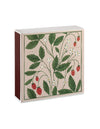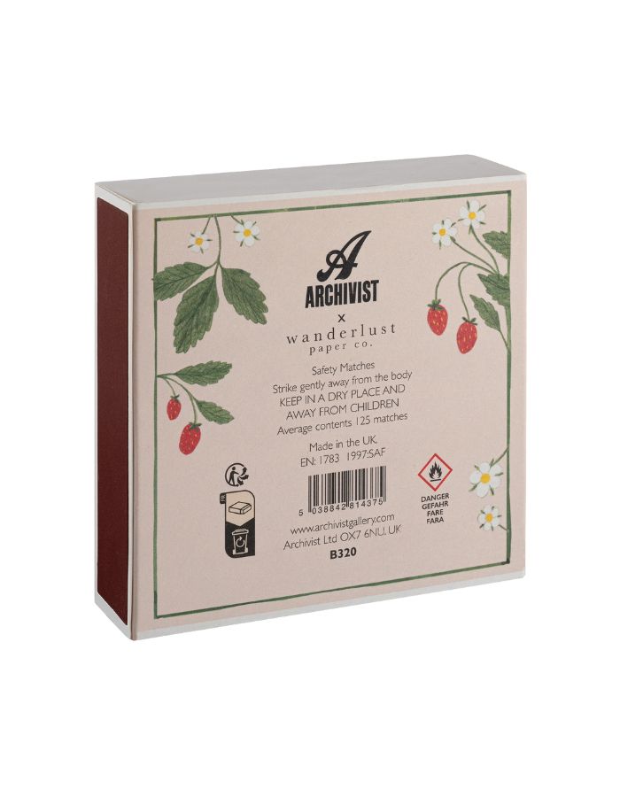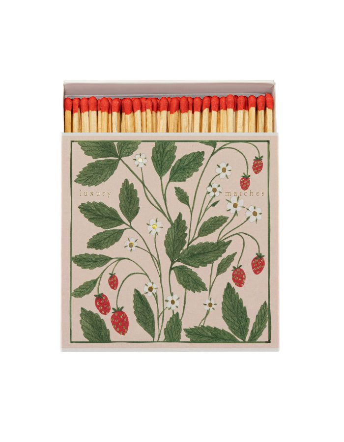 Notre boîte d’allumettes carrée signature séduit par son motif délicat de vignes de fraises et marguerites, rehaussé de détails dorés et accompagné de l’inscription « luxury matches ». Remplie de 125 allumettes naturelles avec embouts rouges, elle combine utilité et esthétisme, parfaite pour illuminer vos soirées et embellir vos espaces décoratifs.