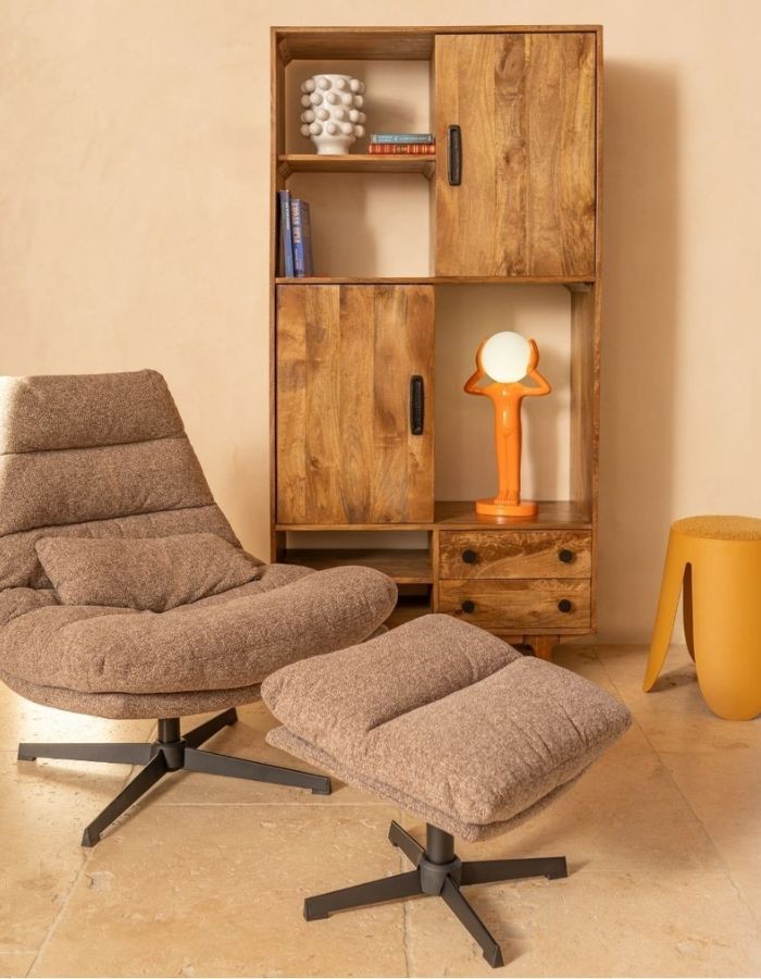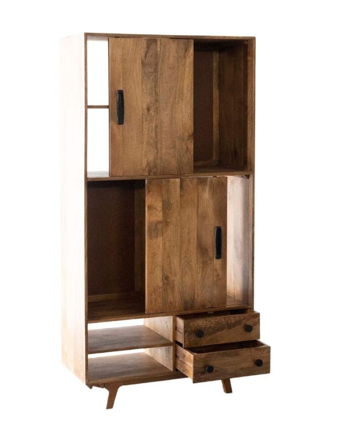 Bibliothèque en Fer et Manguier Alliant bois de manguier massif et structure en fer, cette bibliothèque au design géométrique offre une esthétique chaleureuse et résolument contemporaine. Sa finition artisanale en bois...