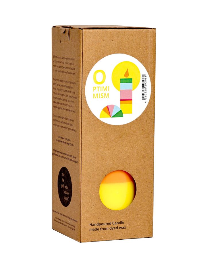 Grande, épaisse et pleine d’assurance, la bougie Optimism est une déclaration visuelle forte. Inspirée par la diversité et la confiance en soi, elle arbore un nuancier vibrant, symbole d’expression libre et de positivité. Une pièce décorative qui transmet un message fort tout en réchauffant l’atmosphère.