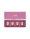 Apportez une touche romantique et parfumée à votre intérieur avec le coffret de 4 bougies “Love”. Présentées dans de jolis pots en verre violet, ces bougies délicatement parfumées aux Baies diffusent une senteur à la fois douce et fruitée, parfaite pour créer une ambiance chaleureuse et pleine d’amour.