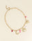 Romantique et raffiné, ce collier en acier inoxydable associe une plaquette nacrée ornée de l’inscription “AMOUR” en émail à de délicats pendentifs symboliques : soleil, lune et petits cœurs.