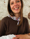 Avec sa dimension carrée de 50 x 50 cm, ses finitions délicates à surpiqûres ton sur ton et sa matière 100 % coton, ce foulard allie légèreté, confort et durabilité. Fabriqué dans un atelier familial en Inde, il est pensé pour être porté, transmis et aimé au fil des saisons.