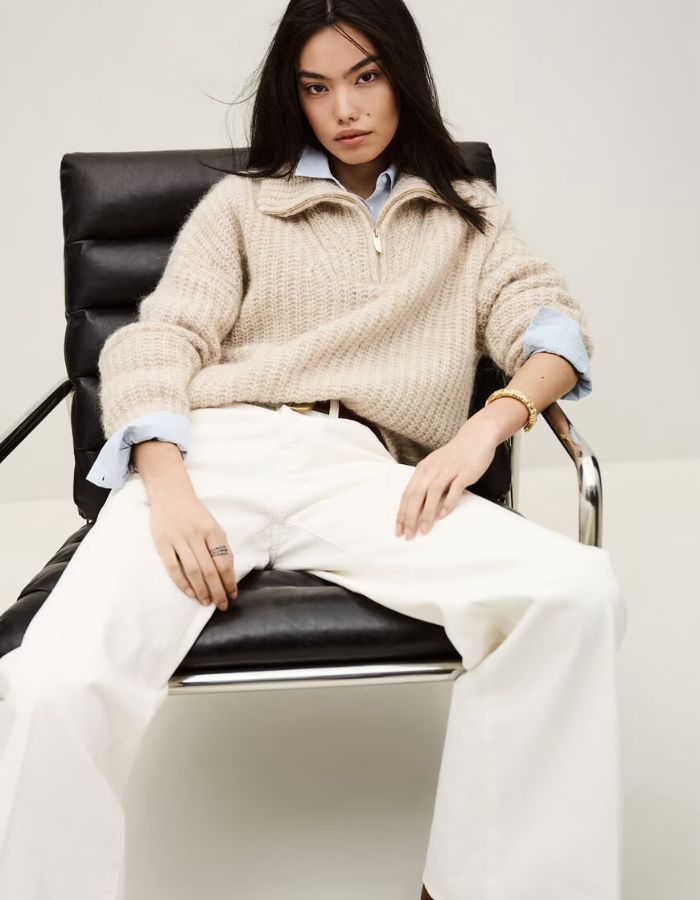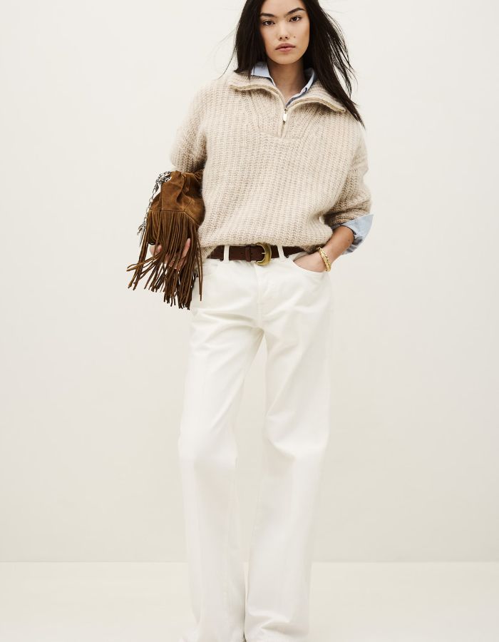 Jean Flare Badou Ecru Ba&sh Le jean Badou couleur écru revisite l’esprit vintage avec une silhouette résolument moderne. Sa taille basse et sa coupe flare allongent la jambe et structurent la...