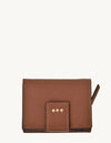 Découvrez le petit portefeuille à dos à dos en cuir grainé, un accessoire élégant et pratique pensé pour les femmes modernes. Son ouverture façon journal intime et sa patte féminine à bouton pression ornée de clous lui confèrent un style raffiné et tendance.