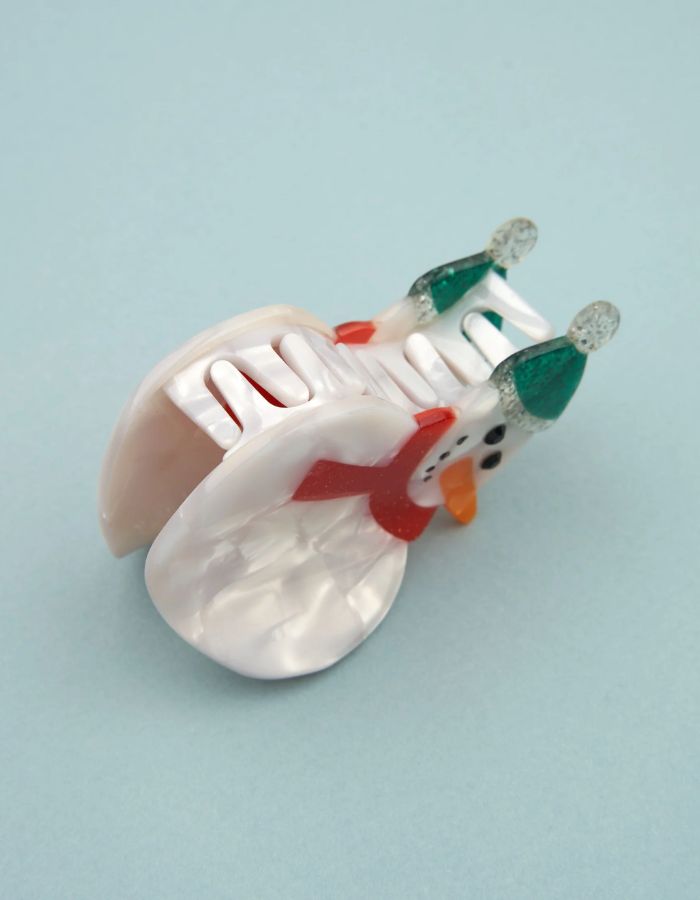 Apportez une touche de magie hivernale à vos coiffures avec la pince à cheveux Bonhomme de Neige, un accessoire joyeux et pétillant qui célèbre l’esprit de Noël. On adore ses détails pailletés, son écharpe scintillante, son bonnet festifet son visage souriant orné de strass lumineux.
