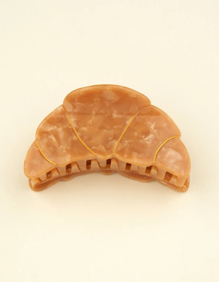La pince à cheveux Croissant évoque la nostalgie des petits-déjeuners d’enfance, quand l’odeur des croissants chauds embaumait la cuisine et laissait les doigts légèrement beurrés. Son design en forme de croissant transforme cet accessoire quotidien en détail régressif et poétique, à emporter avec vous chaque matin pour une touche de douceur et d’originalité. Chaque pièce étant unique, la couleur peut varier légèrement, renforçant le caractère artisanal et charmant de cette création.