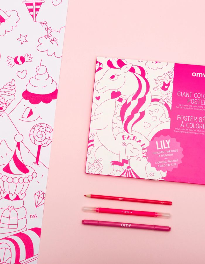Poster Géant à Colorier Lily Omy Lily la licorne s’invite dans un poster géant à colorier pour un moment créatif plein de féérie !Dans un décor magique peuplé d’arcs-en-ciel, de...