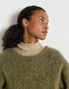 Sa coupe ample et ses manches longues apportent une touche décontractée tout en conservant une silhouette féminine et moderne. Le col rond met en valeur le port de tête, tandis que la texture fluffy donne au modèle un aspect vaporeux et raffiné.