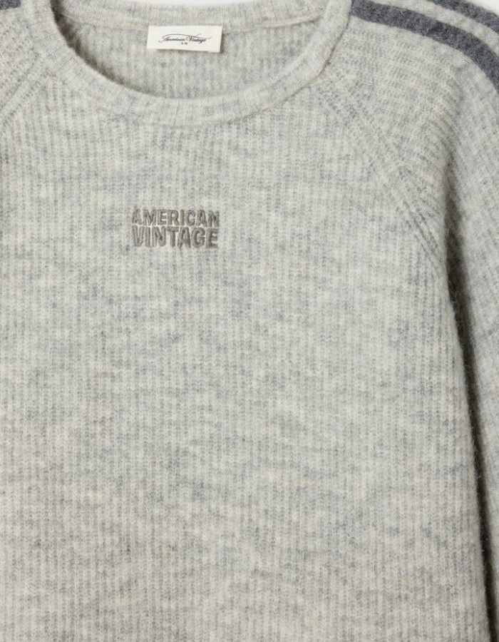 pull Vitow American Vintage, pull manches 3/4 femme, pull gris clair femme, pull laine alpaga femme, pull sport rétro femme, maille fluffy American Vintage, pull coupe ample femme, pull iconique AMV