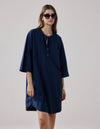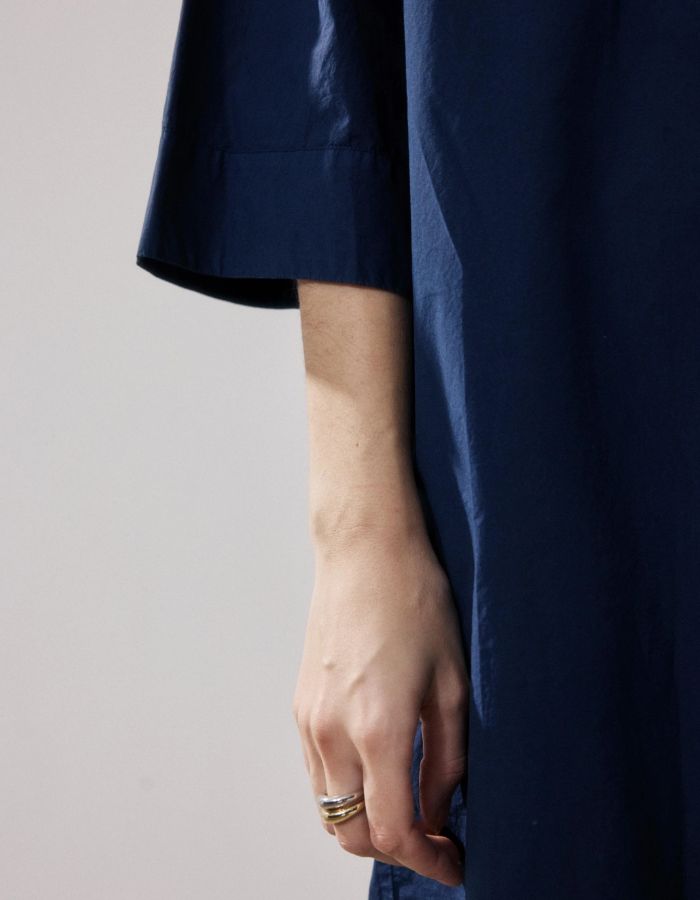 La robe femme Rister en popeline bleu nuit est une pièce casual au charme minimaliste. Nouveau modèle de la collection, elle séduit par sa structure épurée et son style naturellement élégant.