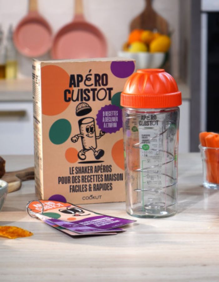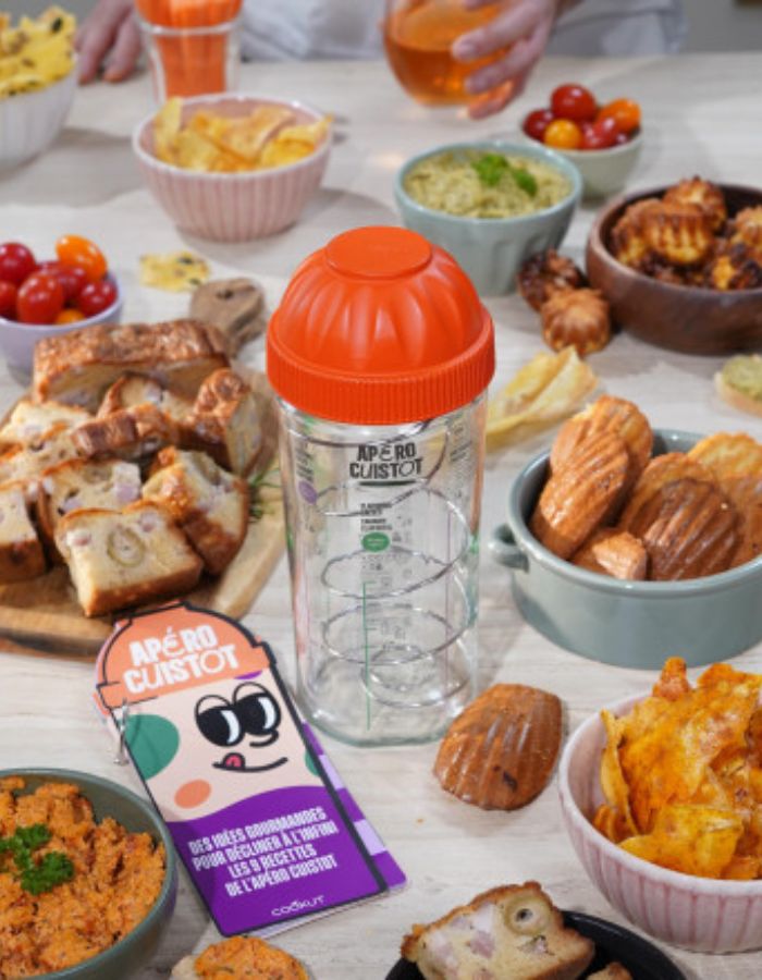 Découvrez le Shaker à Apéro Apéro Cuistot, l’outil idéal pour réaliser des apéritifs faits maison rapidement et facilement, sans robot, balance, fouet ou saladier. Parfait pour épater vos invités ou pour vos moments gourmands à la maison, il permet de préparer 9 bases de recettes apéritives et d’explorer une infinité de variantes : cakes salés, blinis, tartinades, tuiles salées… il y en a pour tous les goûts !