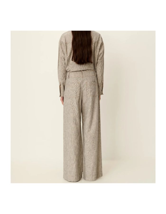 La matière associe lin et coton organique certifié OCS, issu de l’agriculture biologique, cultivé sans engrais ni additifs chimiques et dans le respect de l’environnement et des Hommes.