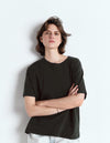Confectionné dans un jersey de coton épais, lisse et compact, il offre un toucher structuré et une excellente tenue au fil du temps. Sa teinte carbone vintage, profonde et subtilement patinée, s’intègre facilement à toutes les silhouettes et apporte une élégance brute à vos looks du quotidien.